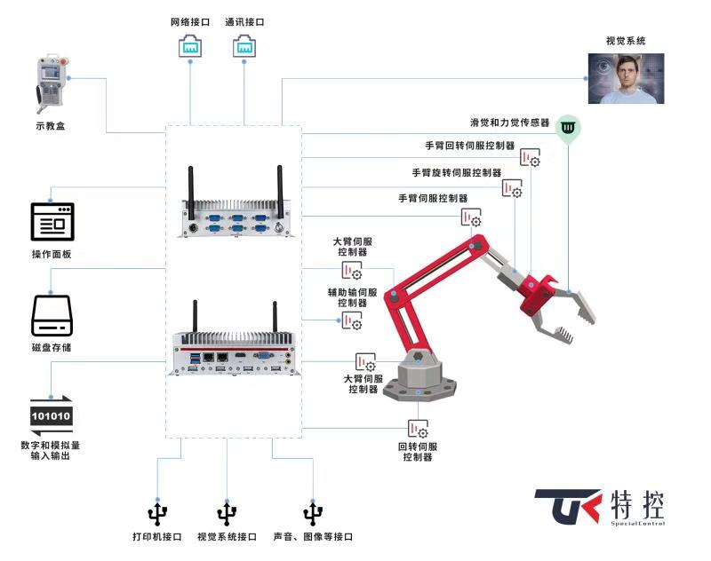由于采摘機器人所處的環境相對復雜多變,對控制系統硬件方面的要求更為嚴苛,普通的硬件是無法勝任的,只有工業級的計算機硬件才能為工業機器人提供專業硬件方案支持。特控推出的新一代嵌入式工控機,支持第五代/六代i7/i5/i3處理器,支持VGA、 HDMI顯示接口和雙網口,并提供多種通訊接口等接口。另外此款嵌入式工控機外觀結構緊湊小巧,節省空間。銀白紅色相搭顯得時尚大氣,全密封鋁合金箱體,大面積鋁鰭散熱,無風扇設計。抗破壞能力強,適應寬溫,能在粉塵大、濕度高等惡劣環境條件下穩定運行,可靠性高。